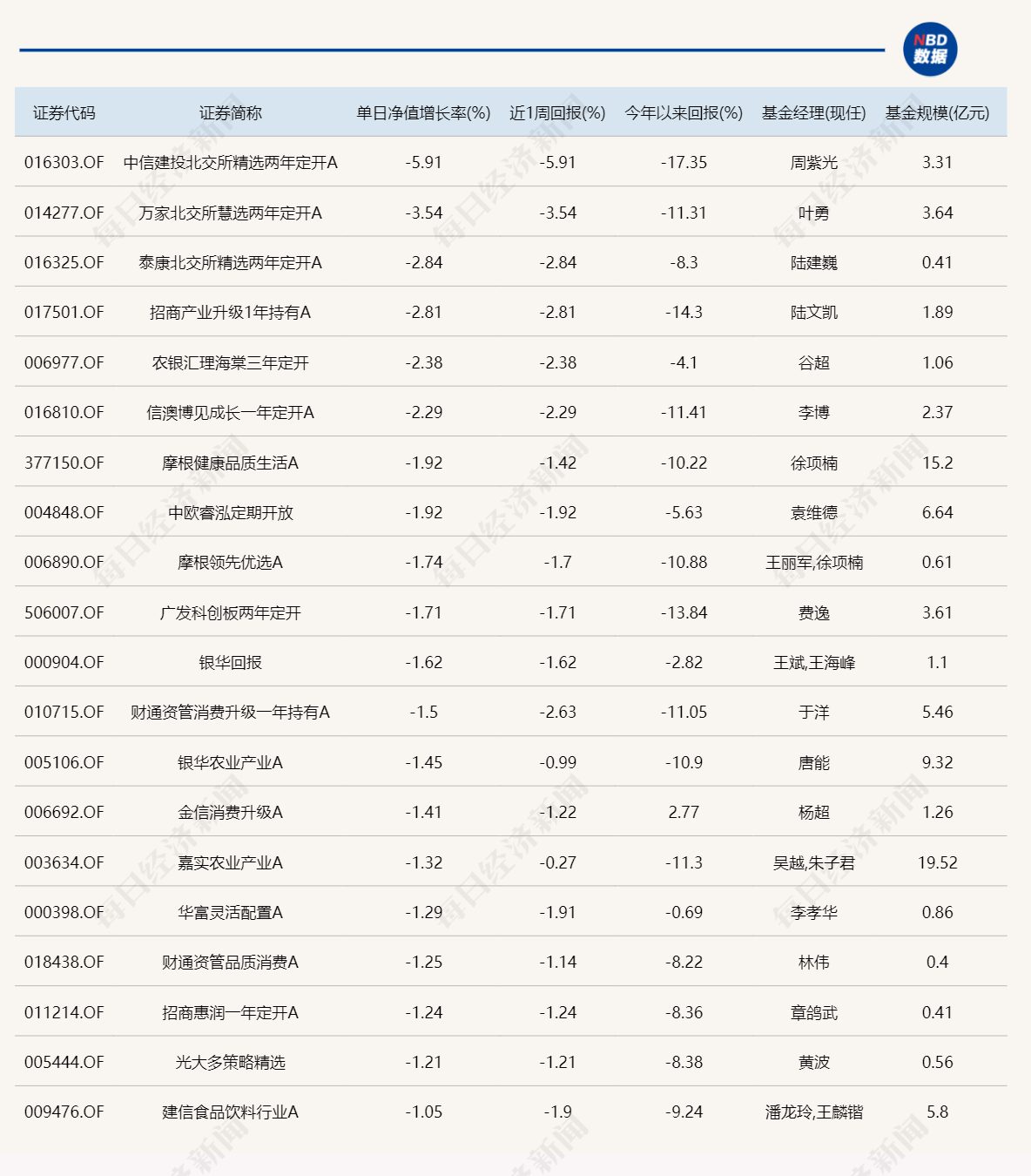 点评:光伏与AI、半导体等方向的基金,今天均有亮眼表现;另一边,在剔除按周披露的部分产品表现后,今天跌幅榜上的基金调整并不深。