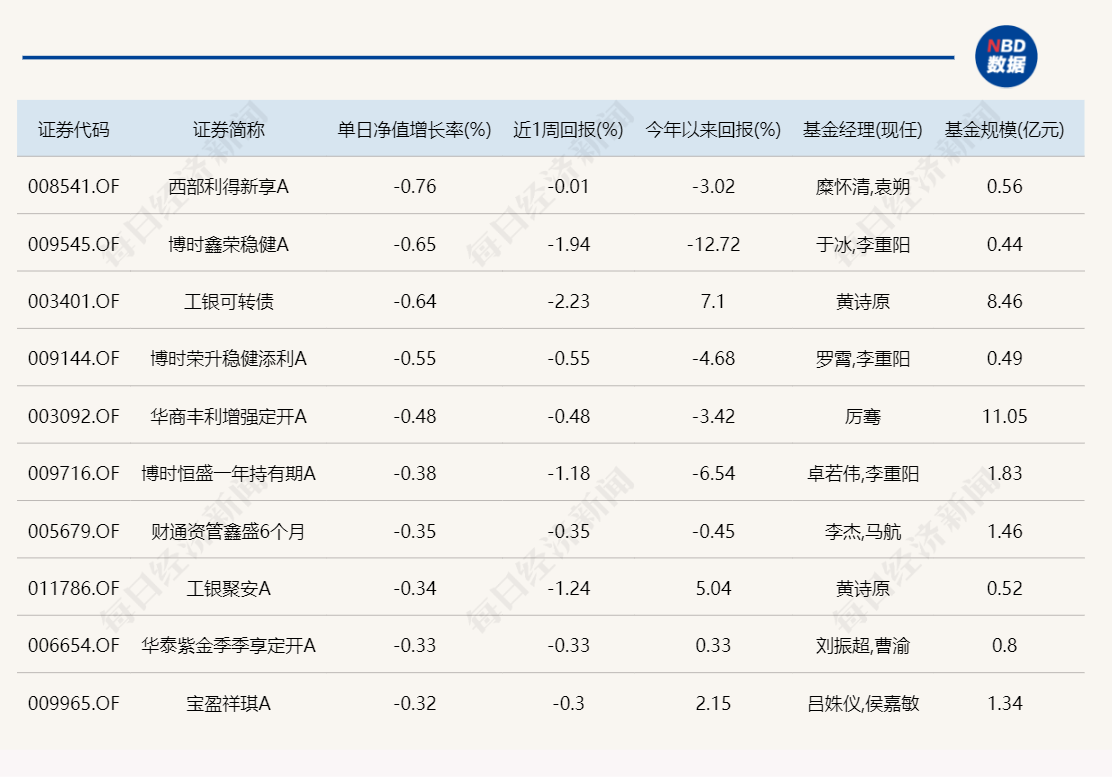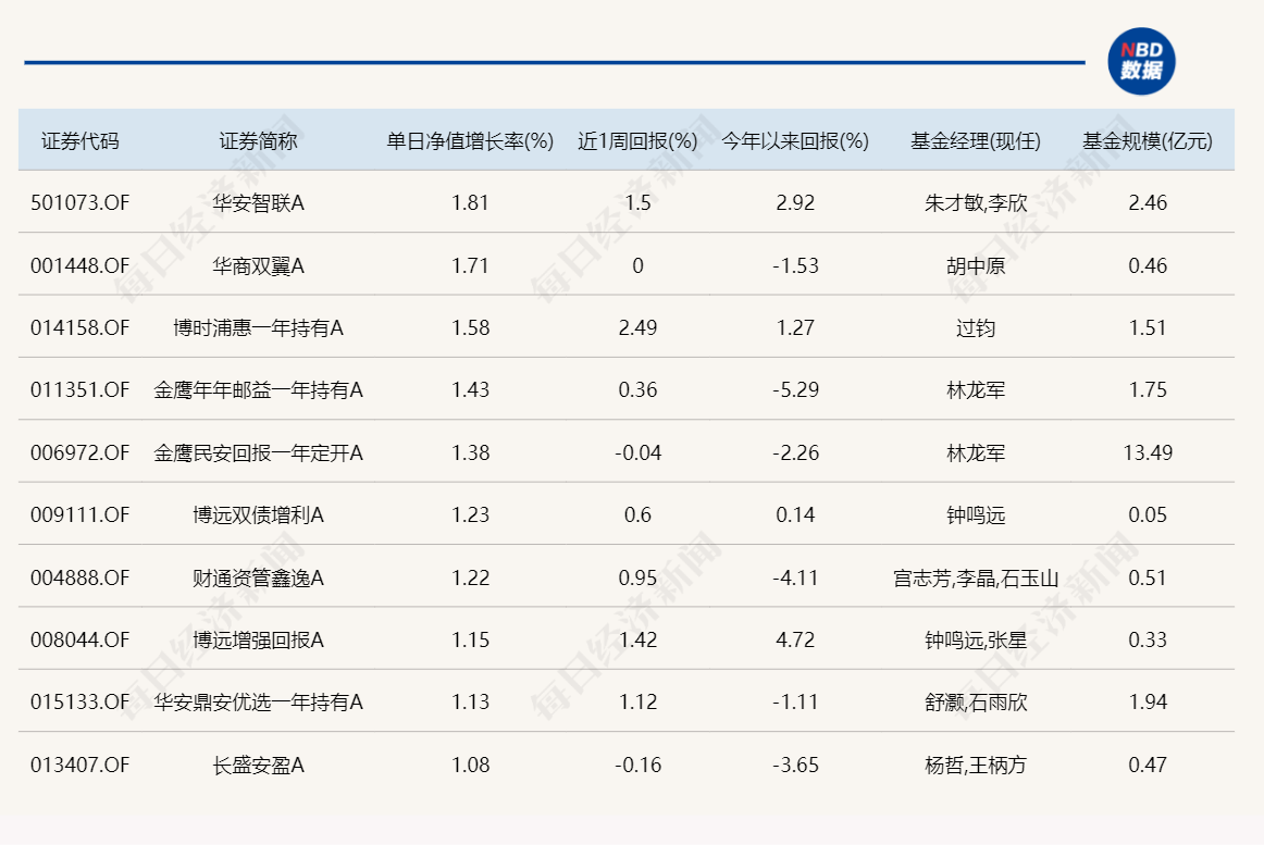 3.单日债基涨跌幅榜