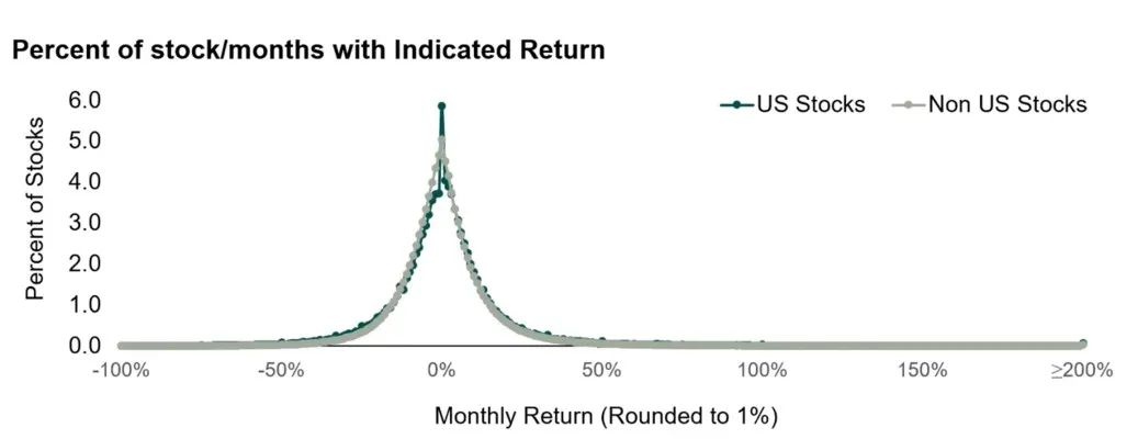 贝森宾德对比了如下两个图形。该研究是基于全球股市中,来自43个国家的64000只股票在1990到2020年之间的数据。