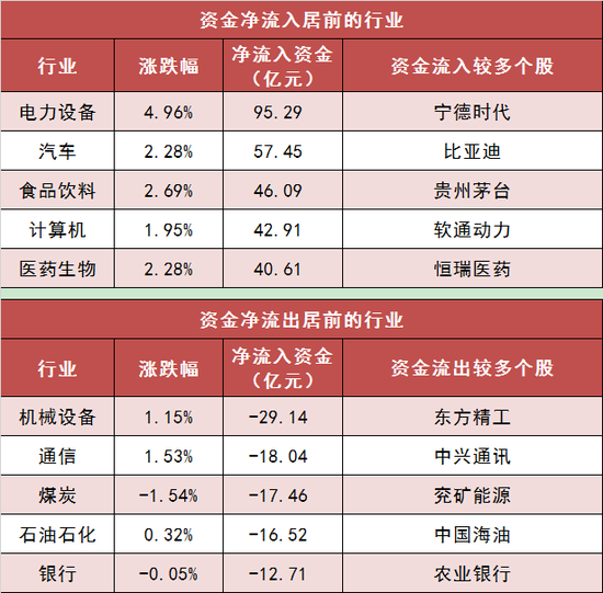 【11日资金路线图】两市主力资金净流入超45亿元 电力设备等行业实现净流入