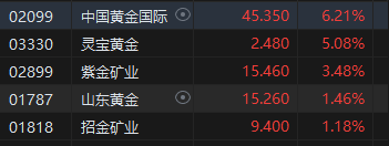 黄金股逆势高涨,中国黄金国际涨超6%。消息面上,尽管美国通胀数据反弹超预期,但投资者对美联储6月降息仍抱有希望,同时,地缘政治紧张局势升级以及美元走软继续支撑避险需求,周三黄金期货收涨。COMEX 4月黄金期货收涨0.68%,报2180.80美元/盎司。