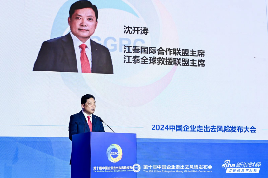 在20日下午举行的“2024全球投资服务论坛”上,江泰国际合作联盟主席沈开涛发表致辞。
