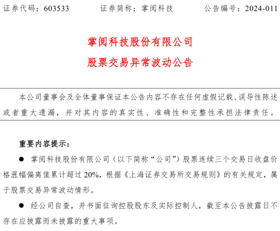 无独有偶,掌阅科技亦发布异动公告称:公司有在将市场已有的AI大模型和阅读APP进行融合,但相关功能应用主要聚焦于公司现有主营业务,包括阅读前的推荐、阅读中的互动、阅读后的知识图谱等,相关产品尚在小范围用户测试阶段,何时推向市场存在不确定性,预计对公司目前业务及经营情况不存在重大影响。