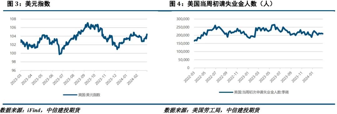 其他方面,欧洲经济略显疲软,日央行结束负利率政策。本周公布的欧元区3月制造业PMI初值45.7,预期47;服务业PMI初值51.1,预期50.5,2月终值50.2,初值50.0;综合PMI初值49.9,预期49.7,2月终值49.2,初值48.9。欧洲央行行长拉加德重申,政策制定者将考虑在6月下调利率。日本央行时隔17年再度加息也颇受市场关注,日本央行宣布加息10个基点,将政策利率从-0.1%至0上调至0%-0.1%,同时取消国债收益率曲线控制(YCC)政策。不过,由于日央行行长表态不及市场预期,日央行加息落地后日元呈贬值状态。