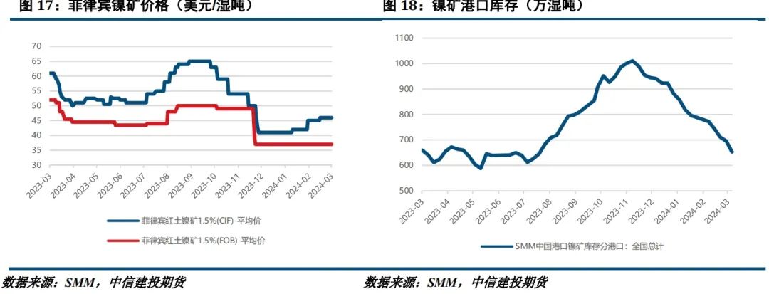 镍矿:印尼RKAB扰动减弱叠加菲律宾雨季即将结束,预计矿端扰动或逐步减弱。