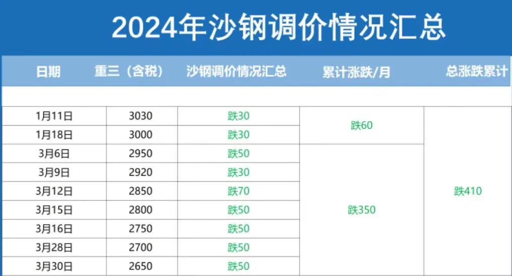 2024年开年以来,对废钢老铁们来说是很让人失望的。尤其是3月,先是迅猛下跌,刚看到似乎有一点反弹的苗头了,随着到货量开始恢复,行情又转头向下了。随着今晨华东大厂沙钢再跌50,2024年以来,沙钢密集下调九轮,废钢采购价格跌了410元/吨。