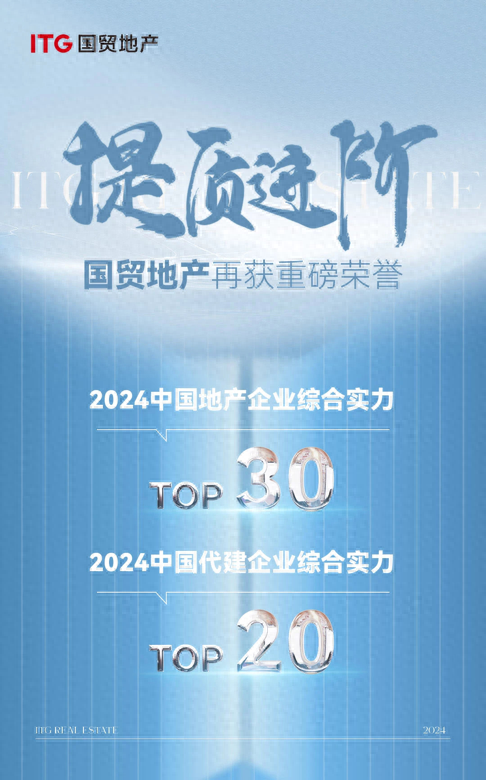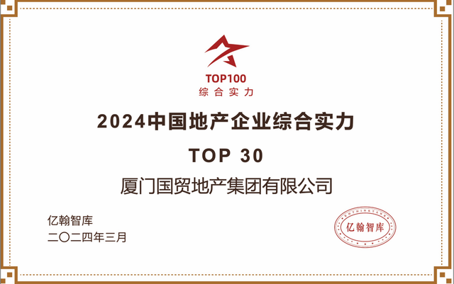 3月29日,由亿翰智库主办的2024房地产TOP100研究成果发布会在上海举行,国贸地产荣获选2024中国地产企业综合实力TOP30、2024中国代建企业综合实力TOP20两项大奖。