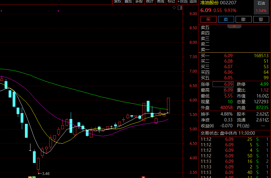 早间,化石能源集体走强,其中石油板块盘中放量涨逾3%,创2015年7月以来近9年新高。准油股份开盘近3分钟就直线涨停,潜能恒信、中曼石油、博迈科等涨幅居前,“三桶油”也全线走强。
