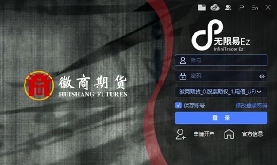 徽商期货股票期权无限易(标准版)交易终端运行流畅、操作便捷!多窗口、多屏灵活布局,满足交易执行/监控分析的个性化设置。可同时登陆多账户!(支持期货、期权、证券多市场同时登陆)单账号、账号组任意切换,实现多账户管理、多策略交易等功能。期权策略与套利、波动率下单、批量下单,交易方式更丰富。股票期权组合申请、组合拆解,T型选择,自动匹配组合,打破传统列表束缚!支持动态数据导出功能,期权持仓风险汇总、虚拟持仓分析、波动率曲线、动态数据(行情、持仓、资金)等可导出到EXCEL,搭配EXCEL强大的分析功能,让表格动起来,分析多元化!
