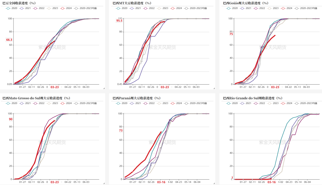 截至3月23日,巴西收获进度达到66.3%,前周为61.9%,慢于去年同期的69.1%。