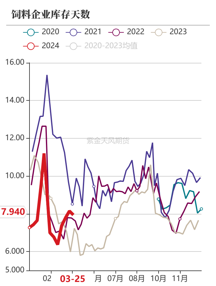 饲企物理库存天数:截至3月25日当周,物理库存天数7.94天。