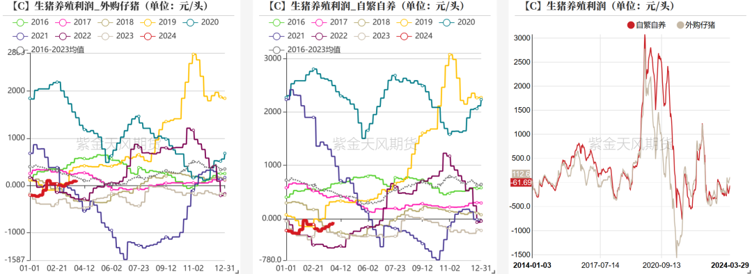 截至3月29日当周,自繁自养养殖利润为-61.9元/头,前周-104.83元/头,外购仔猪利润112.6元/头,前周89.44元/头,养殖利润有所好转。