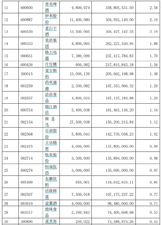 最新持仓:中国中免退出十大重仓股 今世缘、迎驾贡酒新进十大重仓