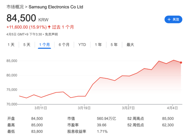 最新股价走势证明了这一观点,3月20日以来,三星电子股价已累计涨超15%。