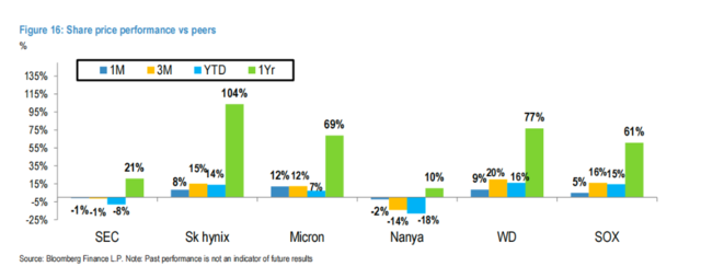 摩根大通表示,HBM执行进展和DRAM利润率与同业之间的差距缩小,是三星电子股价表现超越同业的关键前提。随着预计三星的普通DRAM利润率到年底可能与HBM相当甚至更高,当市场叙事从“AI内存”转向“整体内存周期复苏”时,股票可能会更积极地反应。