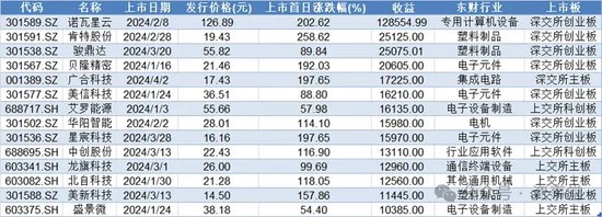 诺瓦星云是2024年以来上市首日最赚钱的新股,其余新股中一签,收益不超过2.6万元。
