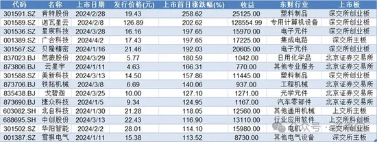 数据显示,该板块年内首日平均上涨162.69%;单签首日收盘收益超2万元的均为创业板新股。