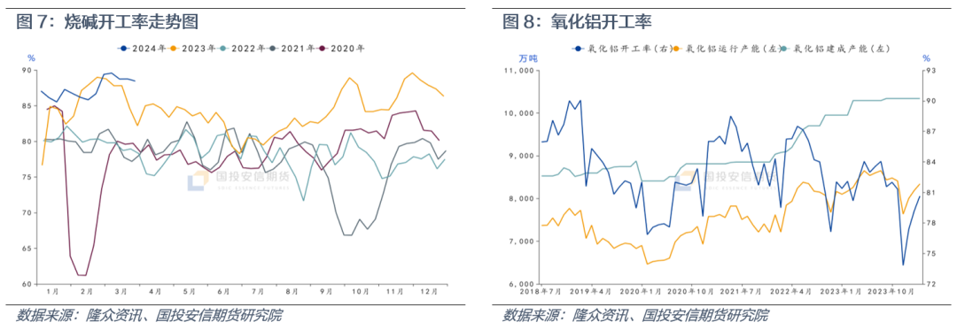 今年以来氧化铝行业盈利表现较好,同比有一个明显提升,因为盈利较好刺激生产企业开工提升。因此,虽然液碱受到高库存压制,但氧化铝开工的不断提升对于烧碱的价格给与较强支撑。但3月下旬山西、河南、广西等地氧化铝企业液碱库存较多,而同时氯碱企业检修较少,氯碱企业出货压力加大。氧化铝企业压价采购液碱意向强化,4月初以后氧化铝采购液碱价格下调令烧碱市场承压,价格展开一轮下跌过程。后期随着氧化铝开工的提升以及液碱库存的消化,氧化铝企业对于烧碱的需求有提升的可能,但短期需求不足对于烧碱价格的压制作用比较明显。