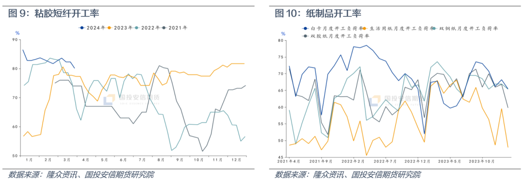 纺织服装也随着疫情管控政策放开以后,居民出游需求增加,服装服饰类消费复苏明显,开工率持续走高,从烧碱主要消费下游粘胶短纤来看,今年以来开工率高位运行,同比明显偏高,不过近期有环比回落趋势。从纸制品消费情况来看,开工率环比下滑趋势持续且明显。总体来看,烧碱非铝下游的消费需求此消彼长,刚需为主,缺乏对于价格的拉动作用。