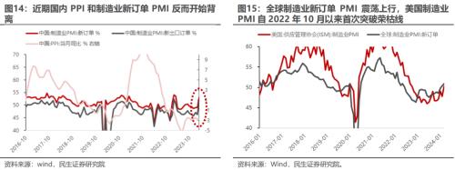 商品价格的回落需要依靠需求的回落,而需求的抑制可能需要更高的商品价格。近期国内制造业PMI订单和PPI开始出现背离,历史来看,两者产生背离的时间较短。当下国内企业“内外卷”仍在延续,对于企业而言,只要利润仍然具备压缩空间,降价抢占市场份额或许是较为可行的方案。全球角度来看,当下不论是美国制造业,还是全球新订单均呈现向上趋势,而美国制造业PMI自2022年10月以来首次突破荣枯线。当下,国内出口环比增速仍然处于过去三年的中位数水平,并不差。从重点出口商品情况来看,企业以价换量仍在持续。不论是上游原料还是下游产成品,出口量同比维持正增长;但价格的压制使得整体出口金额表现较弱。