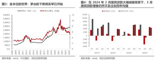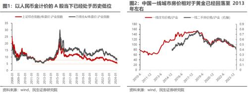 如果从黄金计价去看当下的各类资产,在金本位的世界里:美股长期顶部已经于21年出现,23年以来的科技进步+通胀回落并未逆转这一趋势,2024年2月新的一轮下跌已经开始,回归之路漫长;从中国来看,股票类资产反而已经回到了2008年左右的水平,压力不大,但中国两大类金融资产的回落之路正在开启:房价相对于黄金价格的下行之路在2020年前后已经开启,而以黄金计价的茅台酒价格已经从21年“房住不炒”后开始回落。黄金当下作为实物资产定价的锚,可能指示实物资产本身的相对价值已经进入了系统性提升的通道。