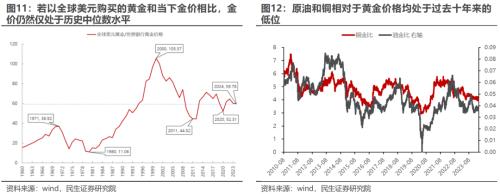 货币信用的走弱,反面则是实物价格的走强。以全球的广义货币/全球黄金储备计算黄金价格,称之为“全球美元计价的黄金”,则当下该黄金价格与世界银行的实际黄金价格之比仅处于历史中位数水平,而以此标准衡量的黄金价格最贵的时候其实出现在1980年,也就是美国第三轮滞胀末期。对比历史的极值水平,以及当下美国货币政策边际转向较为明确,货币信用将进一步受到挑战,实物资产价格中枢仍有较大抬升空间。