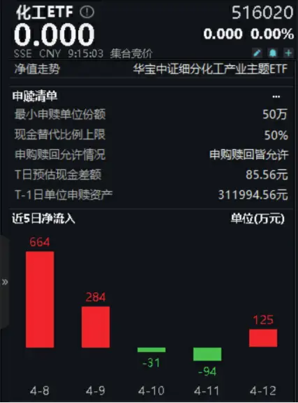 场内热门ETF方面,化工ETF(516020)近期频获资金回流。数据显示,截至上个交易日,近5日,化工ETF(516020)有3日获资金净流入,3日净流入额合计超千万元,反映部分资金看好化工板块后续走势,不断进场布局。