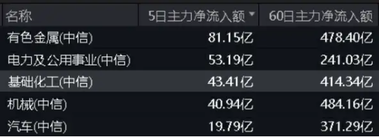 化工板块近期的大受关注也体现在了资金面及二级市场方面。从资金面上来看,近期,主力资金大举流入化工板块。Wind数据显示,截至上个交易日(4月12日)收盘,近5日,基础化工板块获主力资金净流入43.41亿元,在30个中信一级行业中位居第3;近60日,基础化工板块获主力资金净流入414.34亿元,在30个中信一级行业中位居第4。