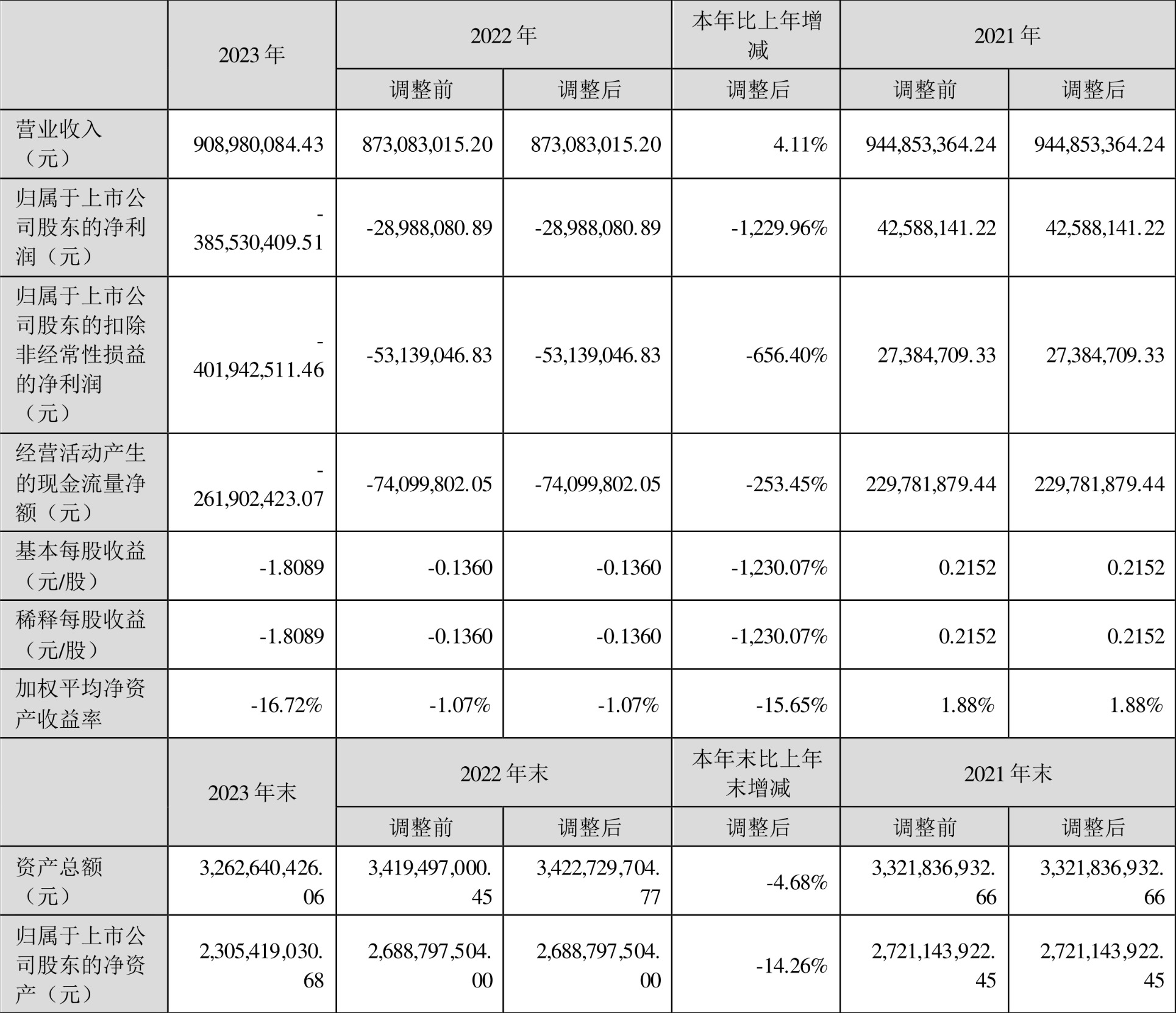 数据显示,2023年公司加权平均净资产收益率为-16.72%,较上年同期下降15.65个百分点;公司2023年投入资本回报率为-15.58%,较上年同期下降13.41个百分点。