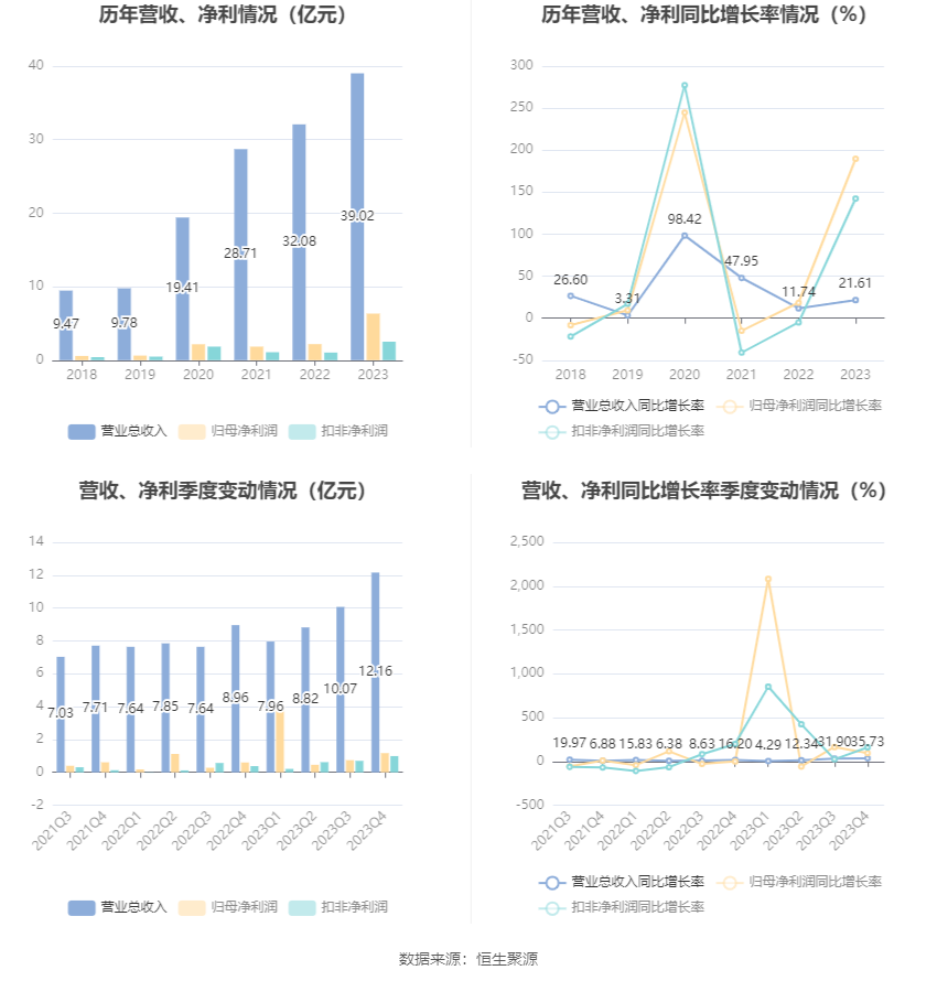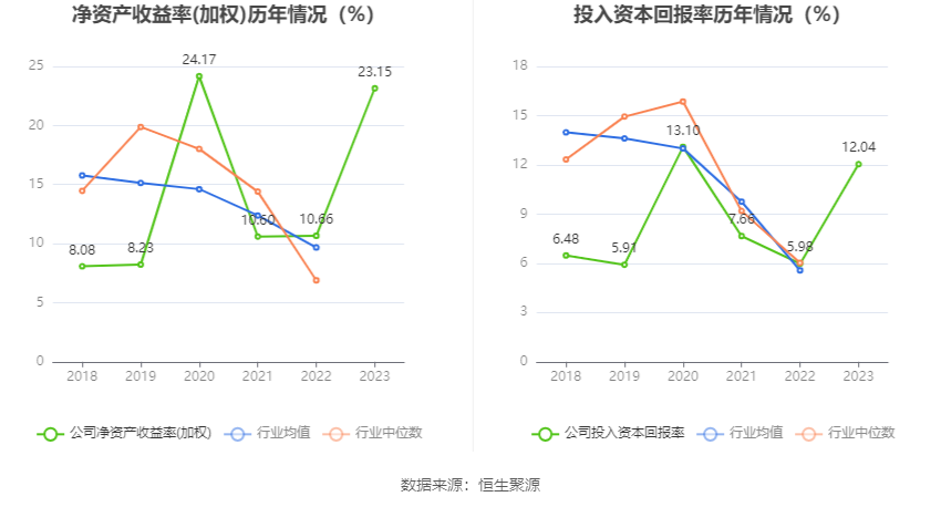 数据显示,2023年公司加权平均净资产收益率为23.15%,较上年同期增长12.49个百分点;公司2023年投入资本回报率为12.04%,较上年同期增长6.06个百分点。