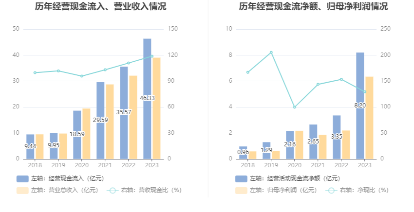 2023年,公司营业收入现金比为118.75%,净现比为129.32%。
