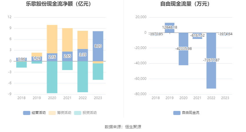 进一步统计发现,2023年公司自由现金流为-3974.64万元,上年同期为-72677.87万元。