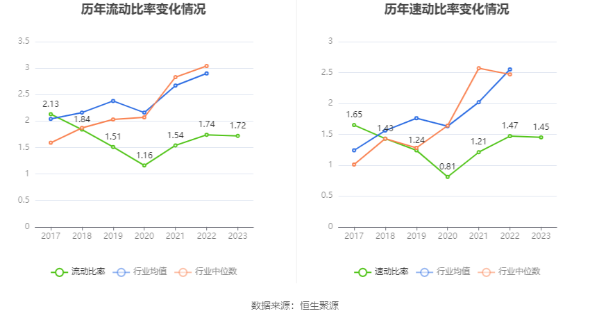 2023年,公司流动比率为1.72,速动比率为1.45。