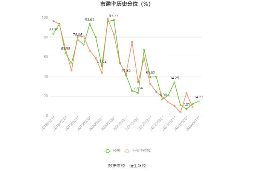 市盈率为负时,不显示当期分位数,会导致折线图中断。