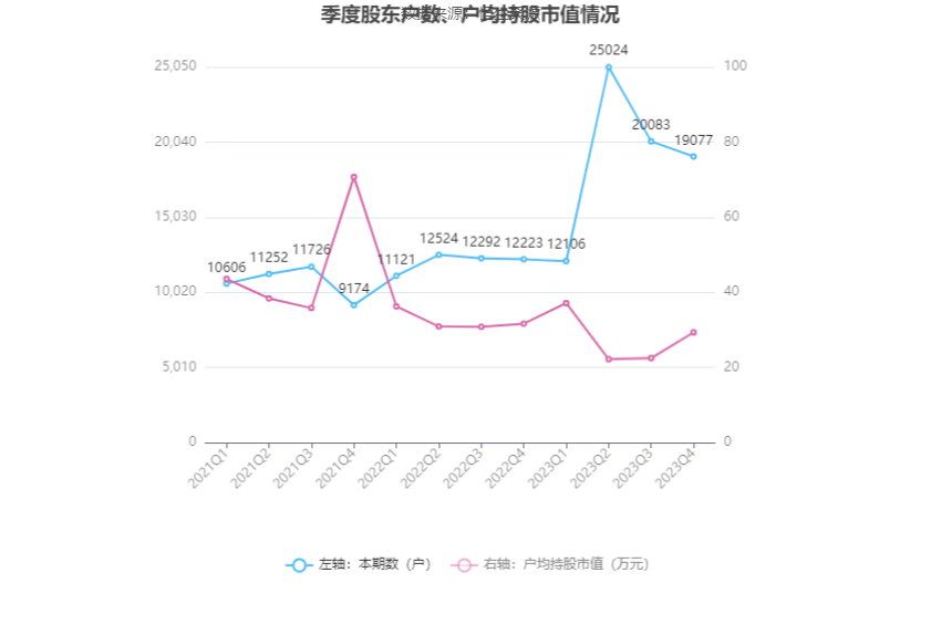 筹码集中度方面,截至2023年年末,公司股东总户数为1.91万户,较三季度末下降了1006户,降幅5.01%;户均持股市值由三季度末的22.50万元上升至29.33万元,增幅为30.36%。