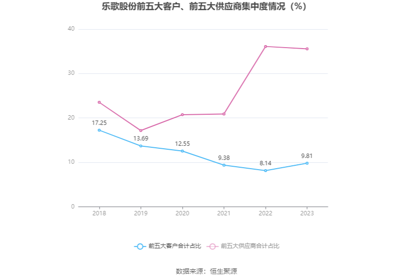 报告期内,公司前五大客户合计销售金额3.83亿元,占总销售金额比例为9.81%,公司前五名供应商合计采购金额8.12亿元,占年度采购总额比例为35.57%。
