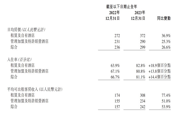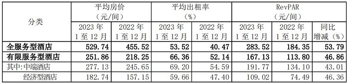 整体而言,首旅酒店的2023年平均房价同比增长近3成,每间可售客房收入RevPAR同比增长近6成。