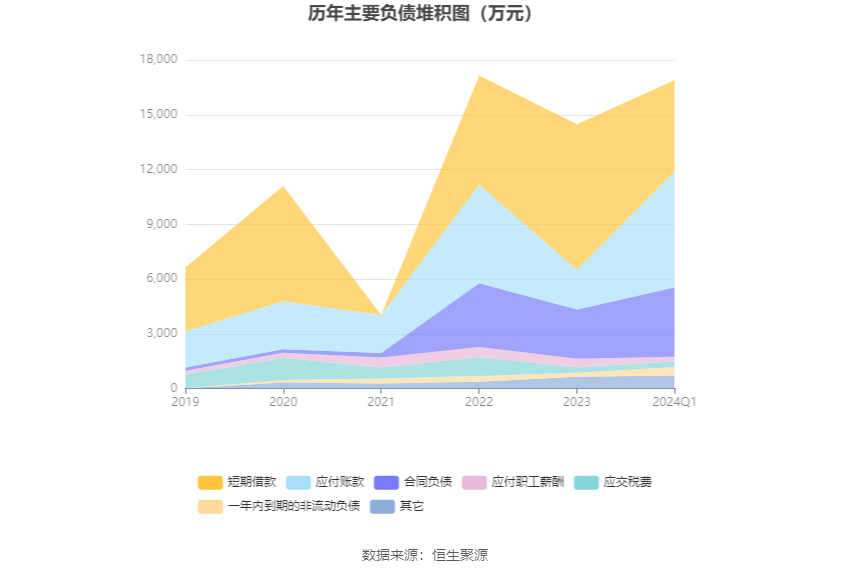 负债重大变化方面,截至2024年一季度末,公司应付账款较上年末增加192.50%,占公司总资产比重上升3.07个百分点;短期借款较上年末减少37.39%,占公司总资产比重下降2.29个百分点;合同负债较上年末增加41.04%,占公司总资产比重上升0.79个百分点;一年内到期的非流动负债较上年末增加105.42%,占公司总资产比重上升0.17个百分点。