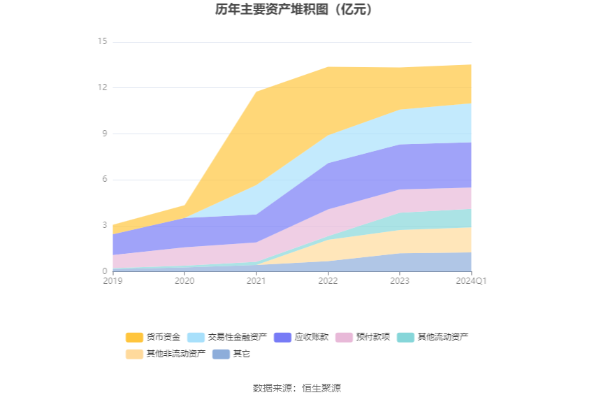 资产重大变化方面,截至2024年一季度末,公司货币资金较上年末减少8.19%,占公司总资产比重下降1.98个百分点;交易性金融资产较上年末增加12.01%,占公司总资产比重上升1.76个百分点;预付款项较上年末减少7.08%,占公司总资产比重下降0.95个百分点;其他非流动资产较上年末增加7.44%,占公司总资产比重上升0.66个百分点。