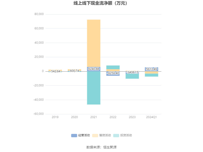 2024年第一季度,公司经营活动现金流净额为5613.49万元,同比增加7913.14万元;筹资活动现金流净额-3186.10万元,同比增加403.51万元;投资活动现金流净额-4188.55万元,上年同期为279.08万元。